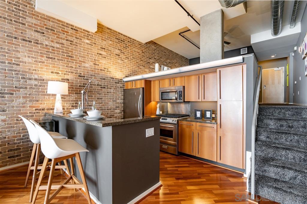 Fully furnished mid-term rental available for flexible stays of 30 days or longer. Urban-Contemporary loft style condo with concrete and brick accents, the loft offers a very spacious bedroom equipped with a king size bed, contemporary furnishings. Fully equipped modern kitchen. This Beautiful loft is located in the heart of Downtown San Diego - "America's Finest City" - in the luxurious ICON building! The unit faces east with classic black trimmed floor to ceiling windows which includes privacy motorized blinds. The loft has exposed ducting, high ceilings, wood flooring, granite countertops, Stainless Steel appliances, upgraded Toto Neorost toilet, and in unit washer/dryer. Building includes The Ultimate Skybox with panoramic views of San Diego and home of the padres Petco Park, 24/7 Concierge. Gym, Recreation Center and BBQ grill. You are walking distance to some of the regions most incredible Restaurants, Breweries, Entertainment Venues and local attractions including Petco Park - home of the San Diego Padres, the San Diego Library, the San Diego Bay and Marina, and so much more. Our location is just a few short blocks from the bustling Gaslamp Quarter yet far enough to preserve your peaceful and quiet condo. Just over a mile away is the amazing Balboa Park with acres of open space, Restaurants, Museums, the Old Globe Theater, and much more. Point Loma 23 min (11.7 miles) via I-5 N, Coronado Island 15 min (5.0 miles) via CA-75 S, San Diego International Airport 13 min (3.8 miles) SeaWorld 15 min (7.9 miles). NASSCO, 8 min (2.3 miles). |