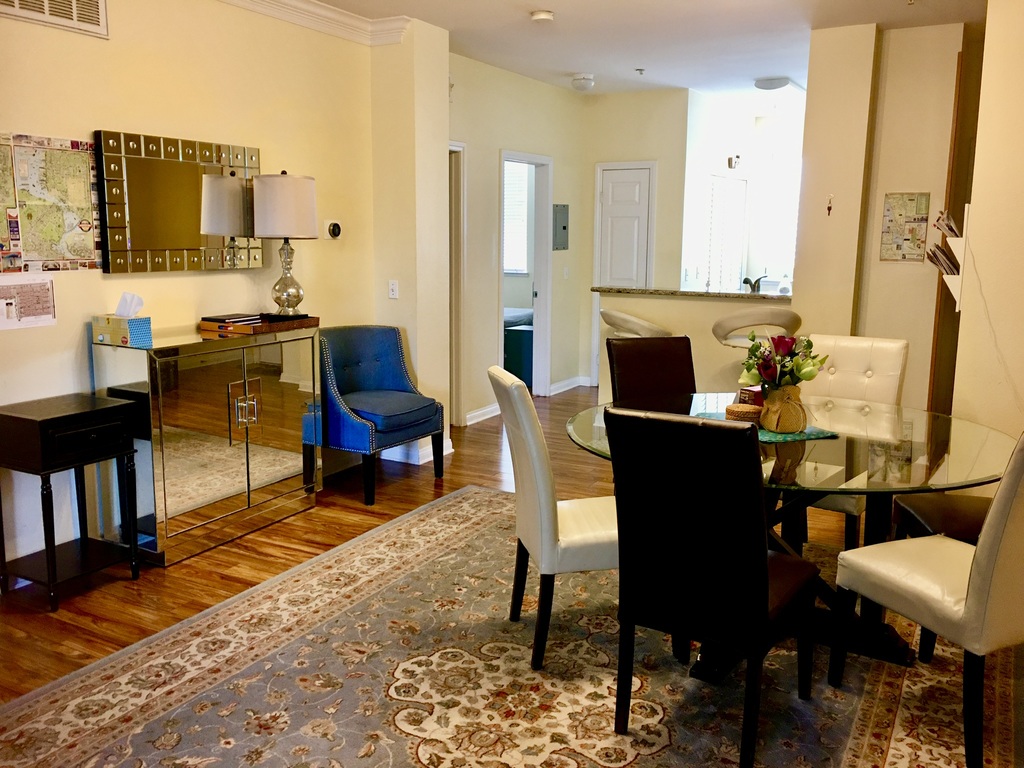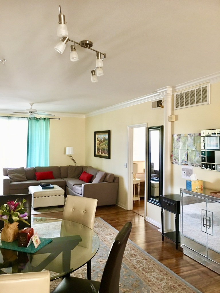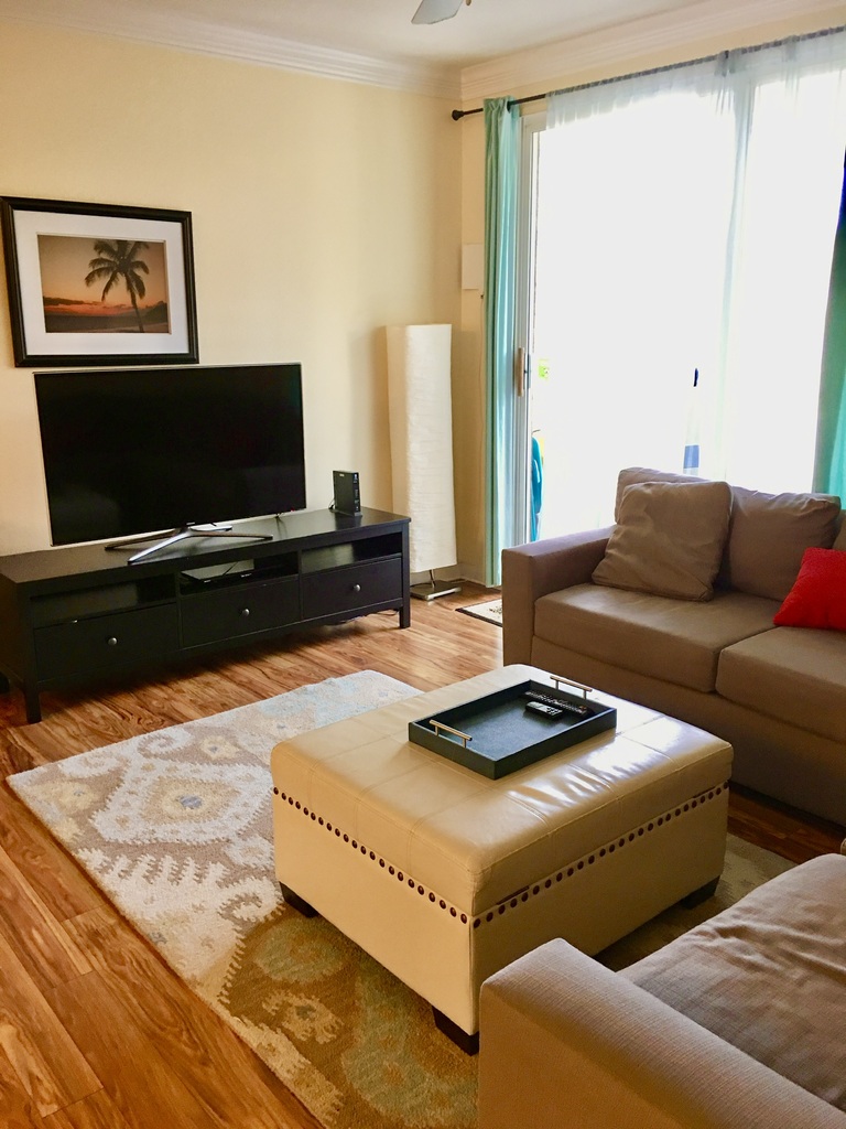 Fully furnished mid-term rental available for flexible stays of 30 days or longer. Beautiful two bed, two bath condo in the center of Mission Valley near Hotel Circle. Within short walking distance of Westfield Shopping mall and the Mission Valley mall, plenty of Restaurants and more. Also only a 5 min drive to Fashion Valley mall. The second floor unit is fully furnished and designed with your comfort in mind. The condo has been nicely furnished, both bedrooms have pillow-top mattress, for overnight guests, there's an inflatable queen size bed. This resort like setting is everything you'll need when staying here! Master bedroom king size and the Second bedroom has Queen size bed. This condo is located above the garages, so there's no one below you. The complex has great amenities, featuring 2 large Pools, Jacuzzi, Entertainment area with Billiard table, Barbecue's, Conference Room and Fitness center.