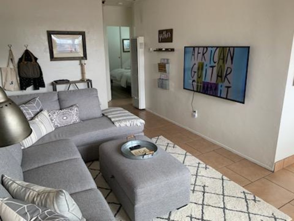 Fully furnished mid-term rental available for flexible stays of 30 days or longer. Ocean Beach Bungalow is the charming front unit of a classic 1955 Mid Century beach duplex. Steps to the San Diego River Bike Path and 1.5 blocks to a gorgeous beach we have you covered for swimming, surfing, or just soaking up the sun with all beach gear you could ask for- umbrella, chairs, cooler, towels and even a beach wagon. The exterior of the building is newly renovated. O Bungalow has a darling fenced and gated patio off the front. The interior has a warm neutral pallet that sets the stage for you to kick back and relax in your home away from home. The furniture, household items, and linens are high quality designer brands. The living/dining area boasts a table for four, a wall of windows with northern exposure, and a cool decorative fireplace. The large sectional sofa is the perfect place to cozy up and watch your favorite shows on the 55" Roku TV. Amazon Prime, MAX, Disney+ included free of charge. Both Cozy bedrooms feature Casper mattresses with sumptuous organic cotton and down bedding. Climate control is managed effortlessly with a mini split AC unit and a gas wall furnace. Ceiling fans in both bedrooms and additional fans located throughout the home Points of Interest. Point Loma 12 min (4.5 miles). Coronado, 20 min (12.4 miles) via I-5 S and CA-75 S. NASSCO 14 min (9.7 miles) via 5 S., Naval Base 32nd St 15 min (10.3 miles) via I-5 S. San Diego International Airport 11 min (4.4 miles). Mission Beach, 9 min (3.5 miles). Mission Bay, 7 min (3.2 miles). SeaWorld 6 min (2.3 miles). via Sunset Cliffs Blvd. |