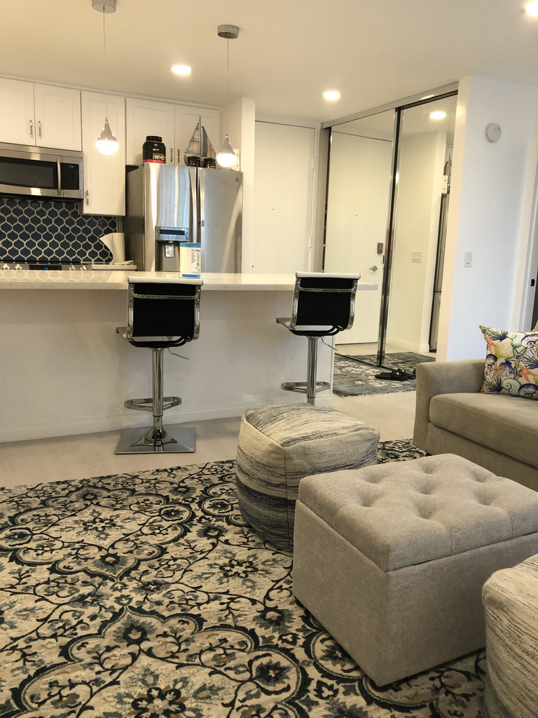 Fully furnished mid-term rental available for flexible stays of 30 days or longer. This gorgeous 1-bedroom condo has been fully remodeled, everything is all brand new! Enjoy the view from every corner, with floor to ceiling windows facing out over palm trees, fountains, pond, and verdant landscaping. There is a fully equipped kitchen, all stainless appliances for your cooking pleasure. The living space, aside from fresh, natural light, provides an open space concept with a Smart TV and a dedicated workspace. Sleep comfortably at night on a plush California King Size Bed. The bathroom features an amazing rain shower. Exclusive Resort-style amenities: This gated community features a Heated Swimming pool, jacuzzi, sauna, gym, a lighted tennis court, game room, jogging path, and BBQ grills. Aside from assigned parking, there is free parking on the premises for your guests. Points of Interest: San Diego Int'l Airport is .5 miles away. 32nd St. Naval station is 5.6 miles away. NASSCO is 3.9 miles away. Coronado Island is 6 miles away. Point Loma base point is 8.5 miles away. Beaches: Pacific, Mission, Ocean and Imperial are all 20 minutes away. |