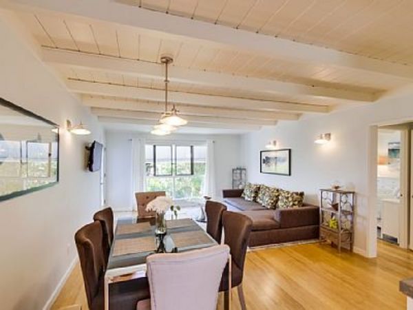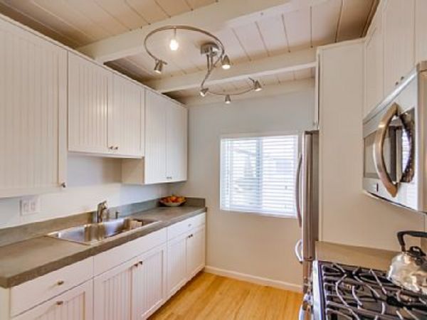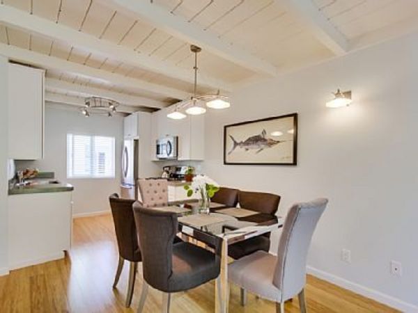 This is a newly renovated upper 2 bedroom, 2 bathroom condo located on the second floor. It was remodeled down to the studs and thoughtfully redesigned with beach living in mind. The kitchen is fully stocked and the dining/living room has a new flat screen TV with 'smart' technology and wifi. There is a common courtyard patio shared by guests staying at the condos that offers bay views and is a perfect spot for grilling and sunbathing. The hot tub accommodates up to 8 and is the perfect way to unwind at the end of the day. Steps away from the condo in the evenings you can view the fireworks from Sea World. If you are in search for a modern and clean condo to enjoy all that Mission Beach and Pacific Beach has to offer this is the place for you! Verona By The Sea is ideally located on the Mission Beach 'Strand' and is close to Pacific Beach, Mission Bay, and Mission Beach. A short 5 minute walk brings you to the Santa Clara Recreation Center where you can rent sailboats, kayaks, stand up paddle boards, and various other water craft. Or if you are interested in surfing or boogie boarding there are multiple surf schools and rental shops nearby. Rent a bike and explore all the way up to Bird Rock in La Jolla or to the South Mission Jetty. A car is not necessary when staying at my condos everything you need is a short walk or bike ride away. Some of my favorite places in the morning are The Swell Cafe or Better Buzz Coffee. For lunch check out Rubicon Deli or the Chop Shop. All these unique local eateries are steps from the condo and are frequented by locals and visitors alike. Bedrooms: 2 Bedrooms, Sleeps 6, Beds for 4-6 Bedroom 2: 1 queen Master Bedroom: 1 king Queen Aerobed with full set of linens for use in living room Bathrooms: 2 Bathrooms Bathroom 1: toilet, combination tub/shower, outdoor shower New fully remodeled bathroom. Bathroom 2: toilet, combination tub/shower Outdoor shower to rinse off sand prior to condo entry. 6 sets of bathroom towels available for guests 1 parking space is included in the rental of this condo. *no washer/dryer on site |